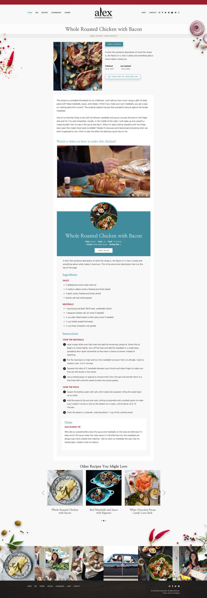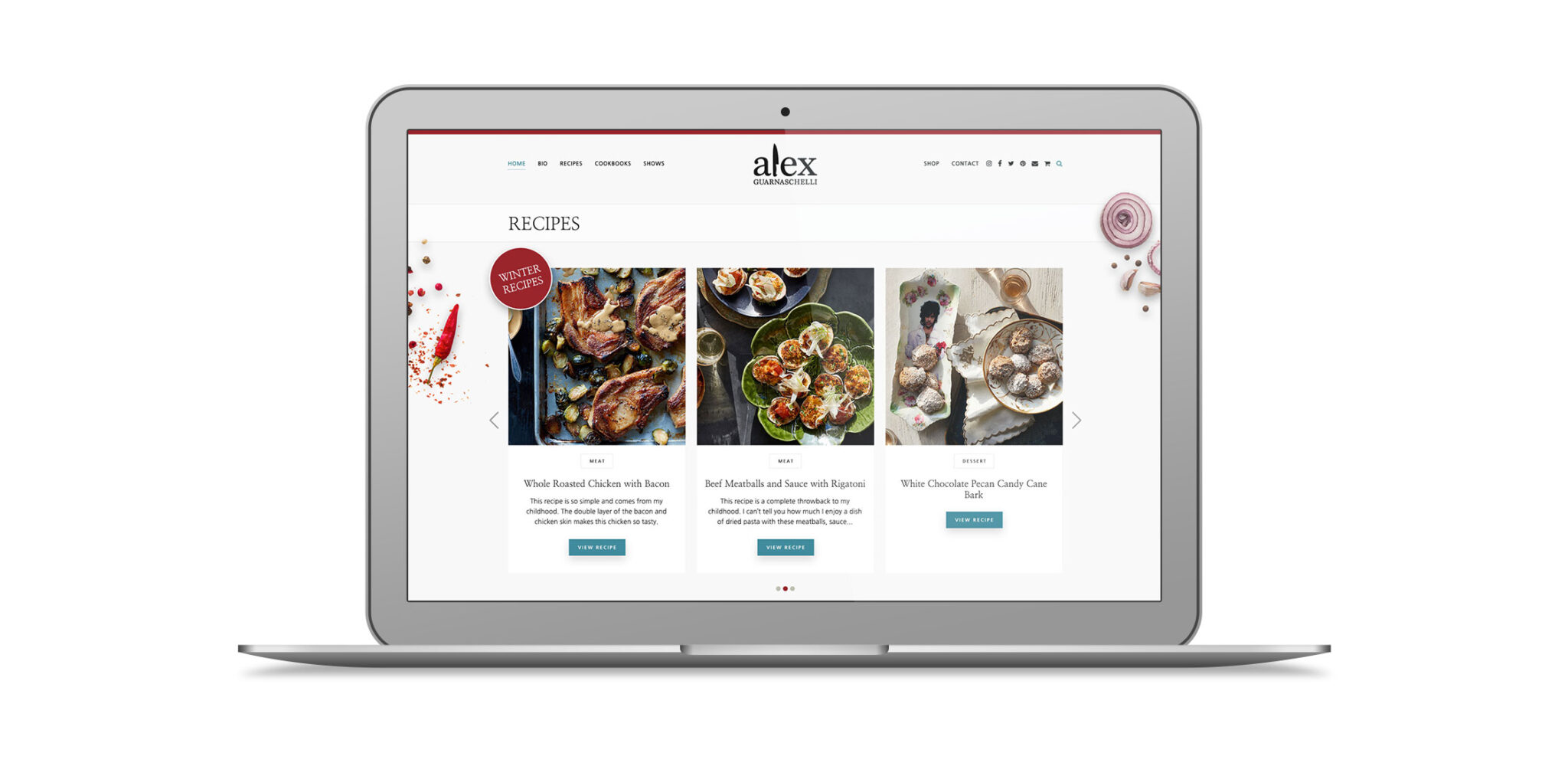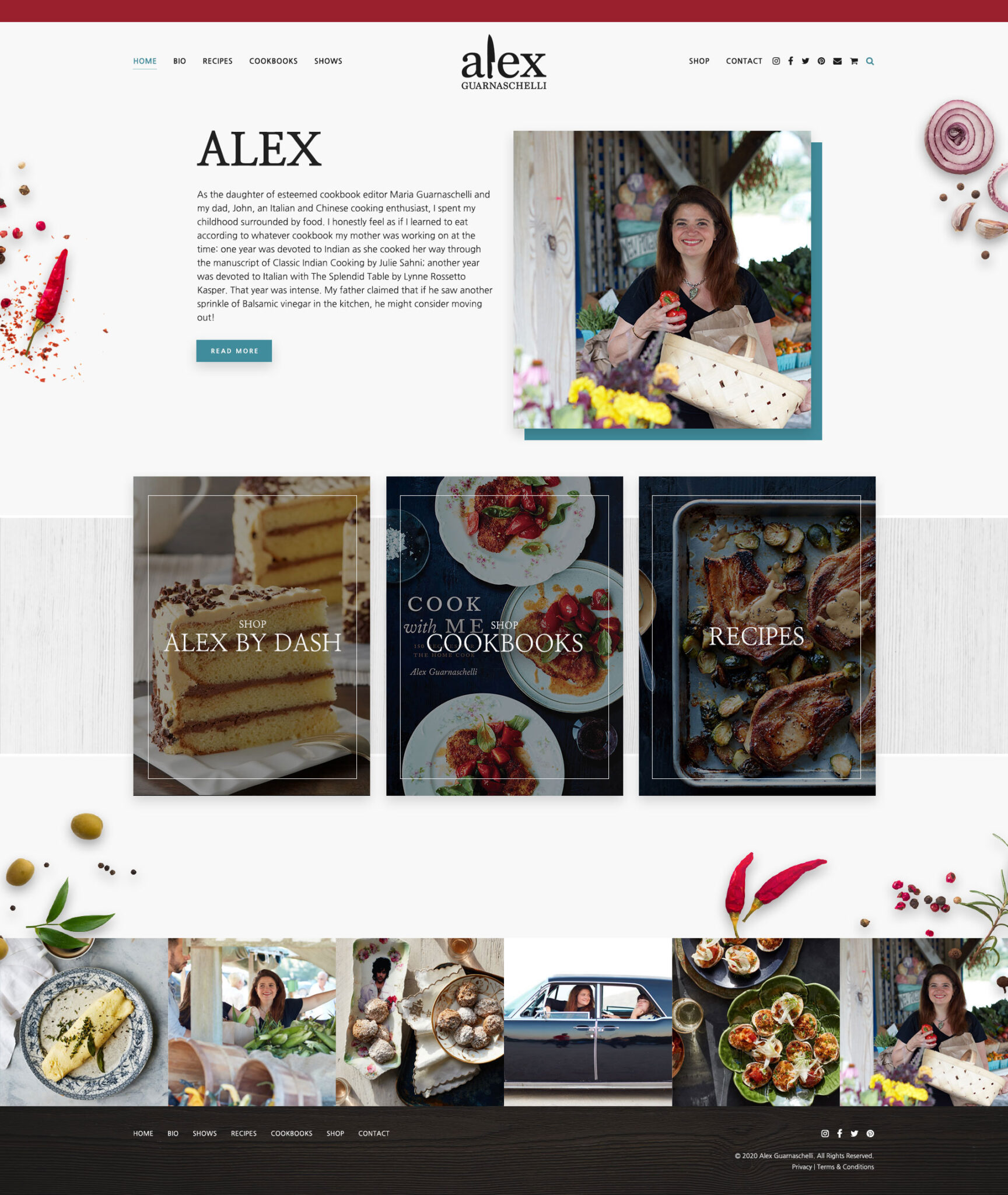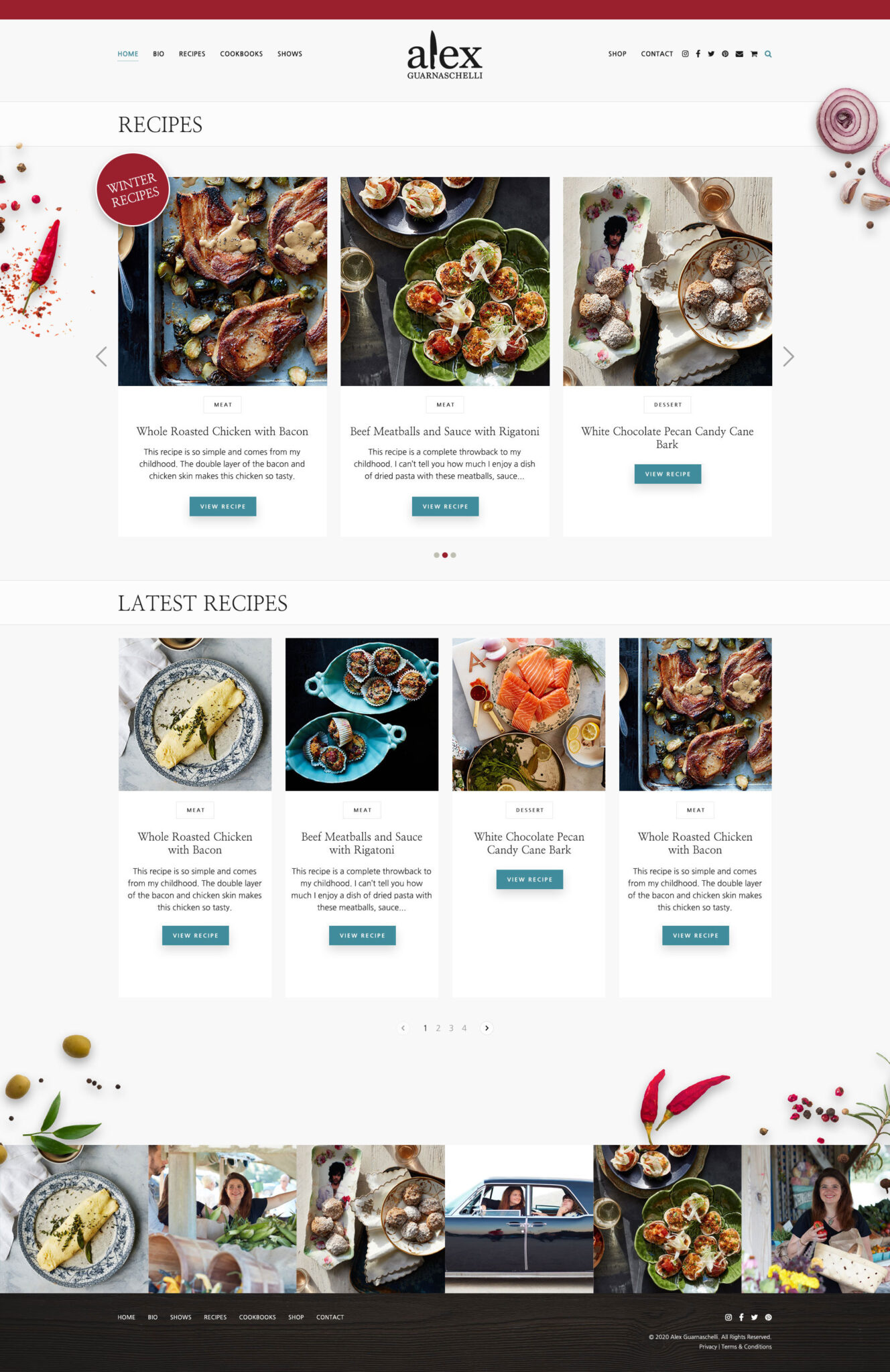 Custom WordPress E-commerce site for celebrity chef Alex Guarnaschelli, featuring dynamic recipe filtering and mobile-first layout.