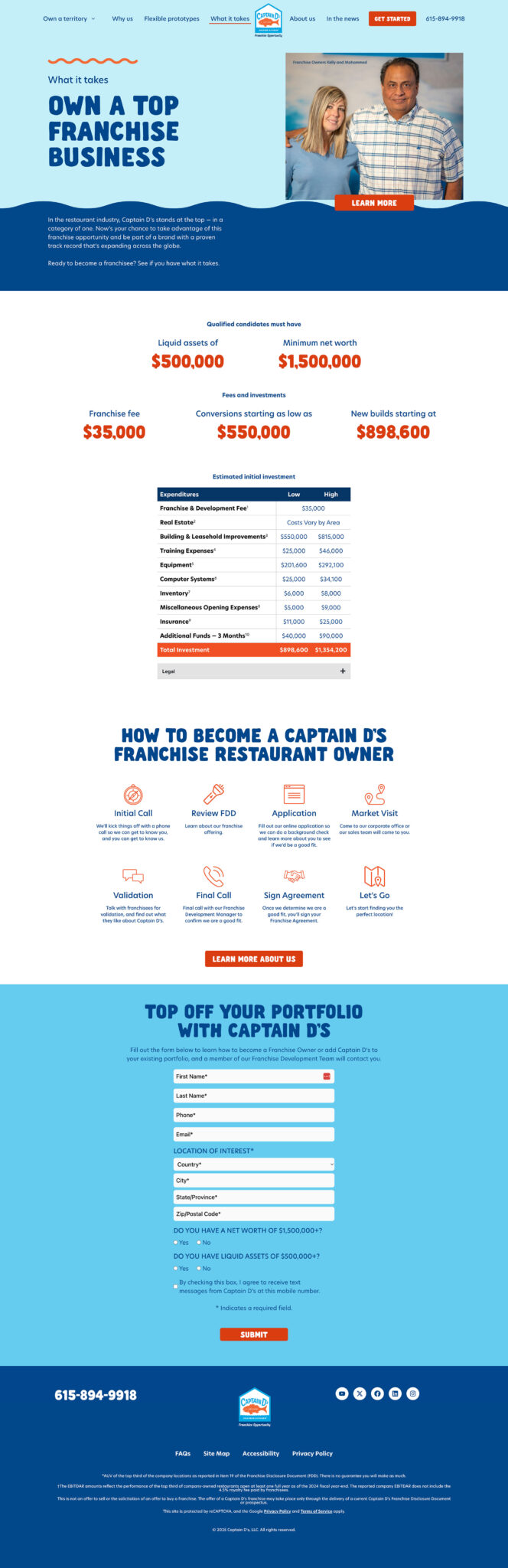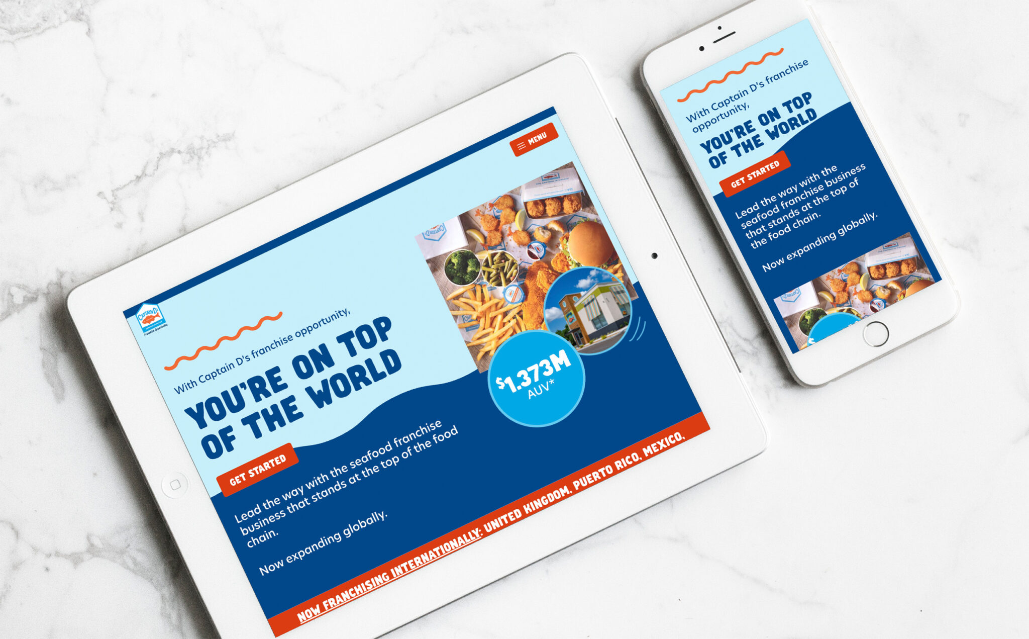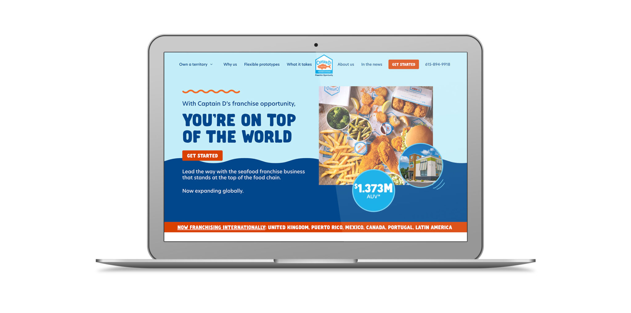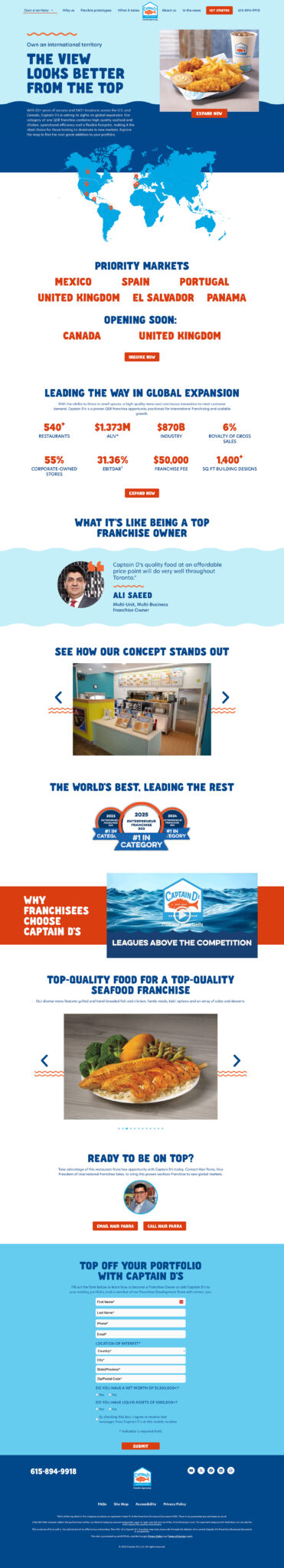 High-performance WordPress website development for Captain D’s, designed to attract franchisees with scalable content blocks, animated stats, and a modern nautical aesthetic.
